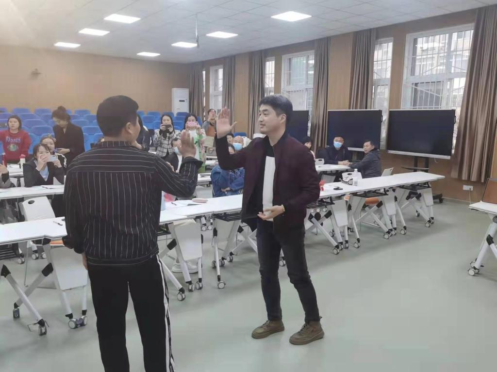 3月14日,公司青年教师中国传媒大学博士周骏在社科楼120教室为国培班学员讲授奥尔夫音乐教学法。