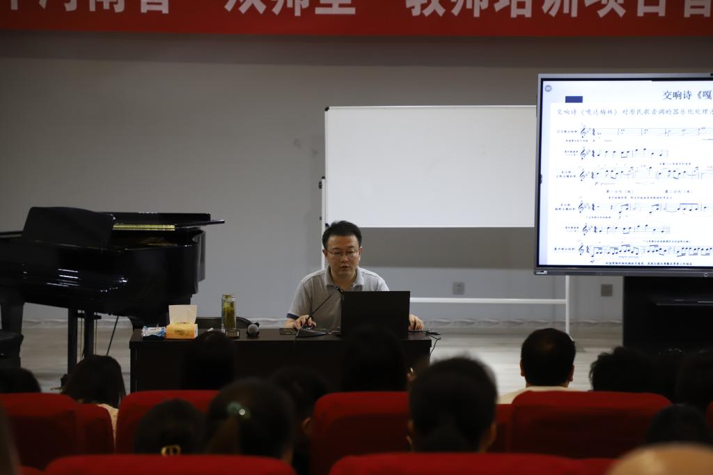 7月15日,邵良柱老师在艺术楼八音讲堂为“双师型”教师讲授了《音乐作品分析》课程。