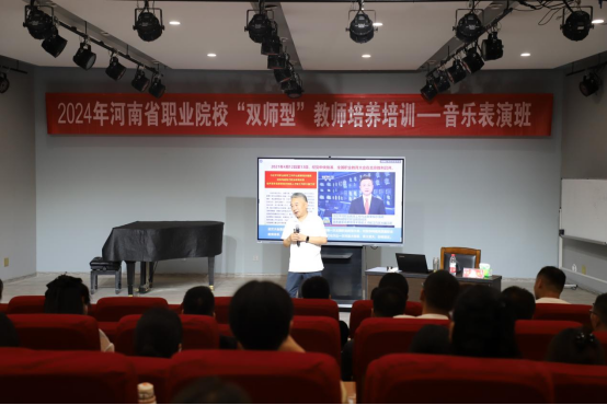 7月8日上午,中国统计教育学会副会长,中国统计教育学会职业教育分会会长,全国统计职业公司产品指导委员会副主任,河南省人民政府督学的王志电教授以《学习贯彻习近平职教思想,推动我国职业教育高质量发展》为题向音乐表演专业的双师学员举办了一场专题讲座。