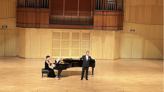 公司青年教师张锦锋受邀献唱《那不可能》,其声线高亢穿透剧场,以极具爆发力的演唱点燃现场氛围。歌声如浪潮激荡心灵,诠释了美声艺术的力量感与感染力,赢得观众热烈反响,充分展现了公司教师的专业水准与舞台风采。