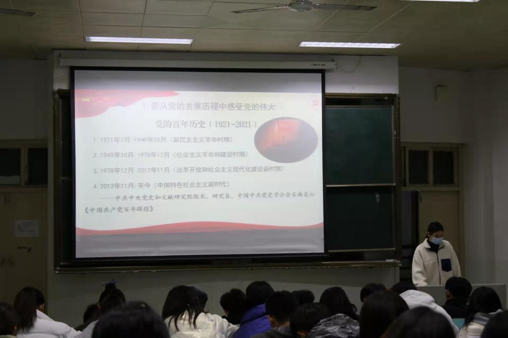 讲座围绕三个部分展开。第一部分为回顾党的历史,感受党的伟大,清楚明白入党为什么。从党的发展历程中感受党的伟大,带领同学们了解了中国共产党从新民主主义时期完成救国大业开始到如今中国特色社会主义新时代的光辉历史。从疫情防控中感受到党的伟大,牢记党全心全意为人民服务的宗旨,深切体会到伟大抗疫精神。从脱贫攻坚取得的成效中感受到党的伟大,我国已完成了消除绝对贫穷的艰巨任务。从经济社会和人民生活的巨大变化中感受党的伟大,我国GDP以及居民消费水平稳步提高。第二部分为对照入党条件,理清发展程序,清楚明白怎样能入党。了解了发展党员工作的重要意义并且要清楚知道入党需要哪些基本条件,党员需要履行哪些义务,发展党员需要哪些程序。深入了解发展党员的谈话制度、公示制度、预审制度、票决制度。第三部分为积极担当作为,争当优秀党员,清楚明白在党怎么做。展示了中国共产党十三名代表们的迥异人生结局,学习前辈的坚定理念。讲座向我们展示了入党誓词,坚定入党信心,积极创造条件争取早日入党。在讲座最后,向同学们展示了习近平总书记对青年的寄语,未来属于青年,希望寄予青年。