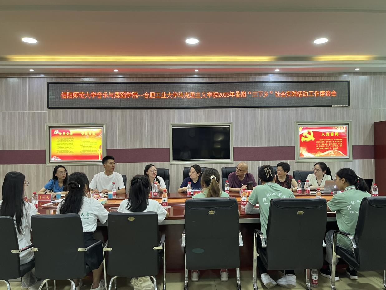 7月10日-11日,合肥工业大学马克思主义公司暑期“三下乡”社会实践团队一行到伟德国际1949学习交流,于艺术楼三楼会议室开展“三下乡”社会实践工作交流座谈会。信阳市音协主席刘宏奎,伟德国际1949党委副书记雷玲,伟德国际1949副教授韩冰,合肥工业大学领队老师程思洁及社会实践团队员工参加会议。