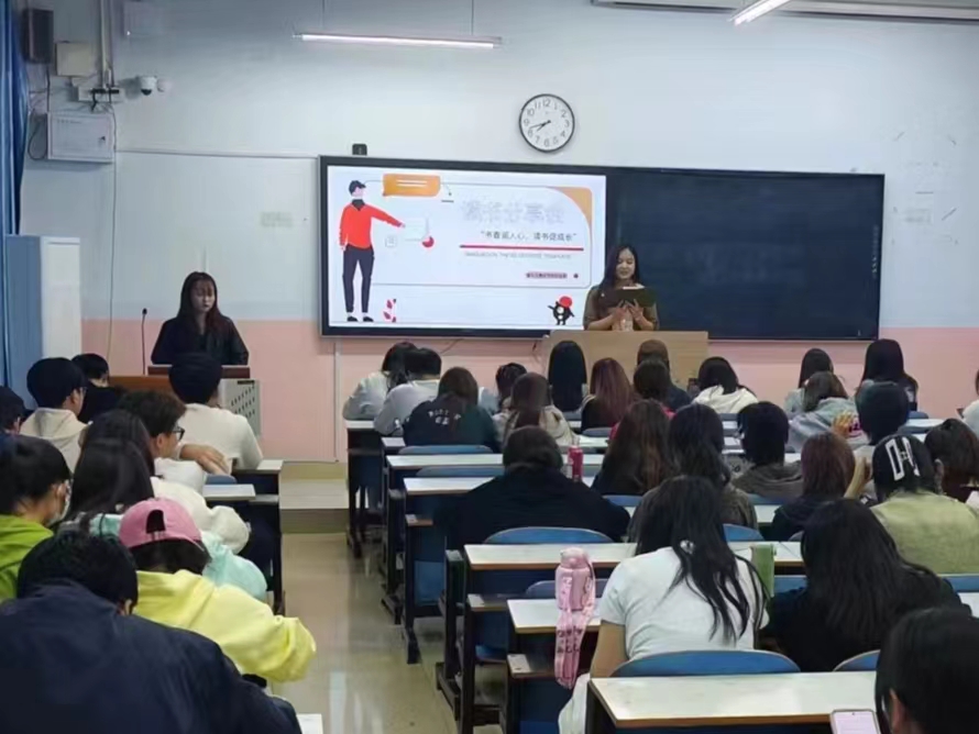 在主持人的一段热情致辞中拉开了活动序幕。参与此次活动的同学以演讲的形式进行分享,首位上台的同学分享了路遥的《人生》并对内容做了详细介绍。从《月亮与六便士》《悲惨世界》《战争与和平》,到《稻草人手记》《平凡的世界》《活着》等,同学们畅游在知识的海洋中。其余上台的同学结合自身学习心得、成长经历,畅谈自己的读书收获、分享读书心得。随后来到自由交流环节,大家纷纷选取自己喜欢的段落语句进行交流分享,将书本与现实结合,畅谈自己的人生理想,反思自己的缺点与不足。在同学们激烈的探讨过后,迎来了最后的评选环节。最后,在依依不舍的氛围中,圆满结束了此次读书分享会。