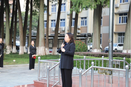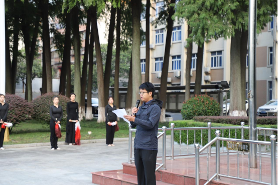 升旗仪式上,国旗护卫队护送五星红旗升起,全院师生肃立致敬。员工代表张怡鑫发表演讲,号召共青团员心系人民,肩负希望;苏杨炅淇引领宣誓,回顾初心使命。辅导员曹阳带领学习领袖思想,激发爱国热情。2024级新生用合唱和舞蹈,以山河为喻,展现青年风采。