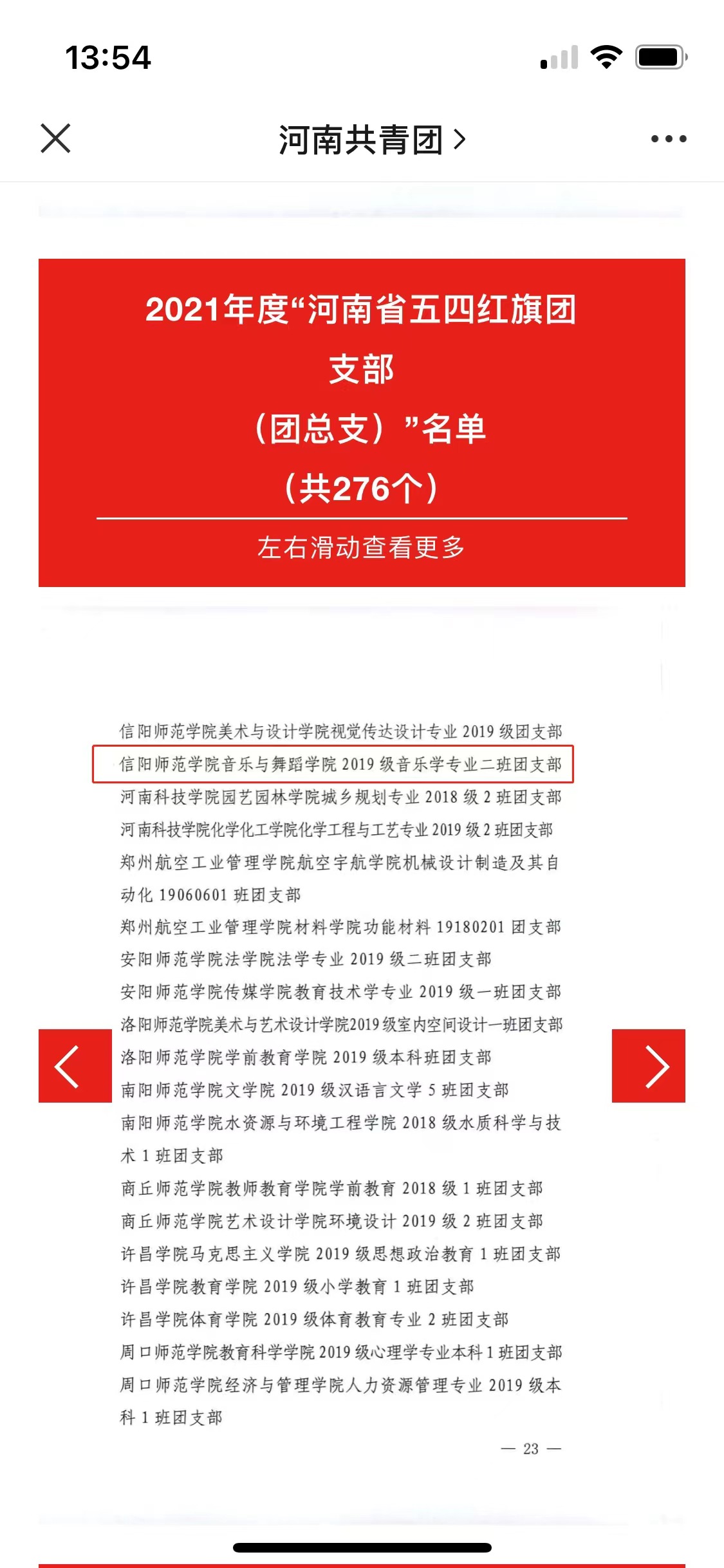 2019级音乐学二班团支部获2021年度“河南省五四红旗团支部”荣誉称号