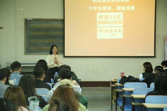 胡益佩通过视频短片向同学们介绍了博采艺术文化传播有限公司成立初衷和发展理念,展示了博采艺术文化传播有限公司发展历程。通过内容丰富详实的ppt,胡经理向同学们详细介绍了企业概况、企业文化、福利待遇、人员需求以及发展前景等。