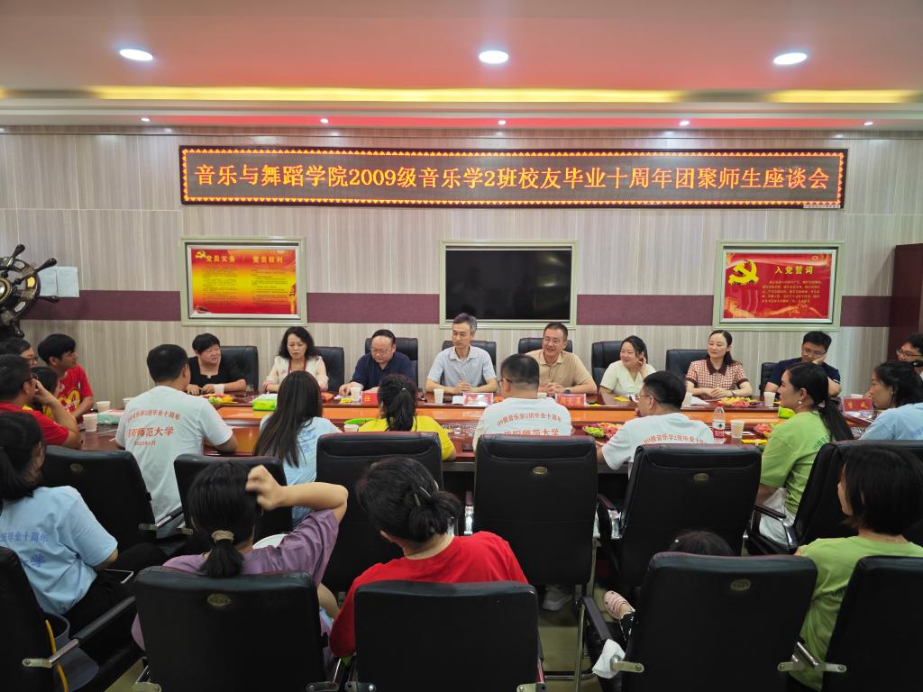“十年之约,初心不改”,6月23日,时值母校更名之际,2009级音乐学2班员工从全国各地回到母校,与阔别多年的老师和同学忆师恩、叙情谊,共话青春、共谋发展。公司党委书记周文勇,经理陈新宇,副经理任远,党委副书记雷玲、教师代表与返校员工见面并于党员之家会议室召开师生团聚座谈会,会议由该班班主任曾威老师主持。
