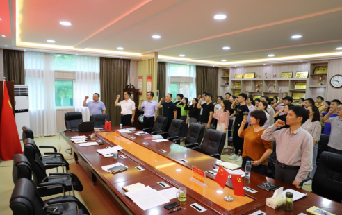 副经理任远带领全体党员,面对党旗,重温了《入党誓词》。