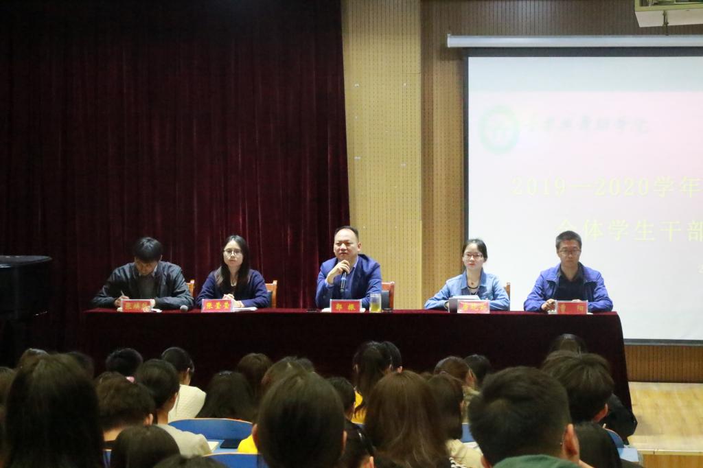 为加强员工干部教育管理,促进员工干部队伍建设,10月21日,公司在艺术楼八音讲堂召开全体员工干部大会。公司党委副书记郭振,团委书记张莹莹,辅导员唐晓云、张焕然、曹阳与公司百余名员工干部参加会议。会议由张焕然主持。