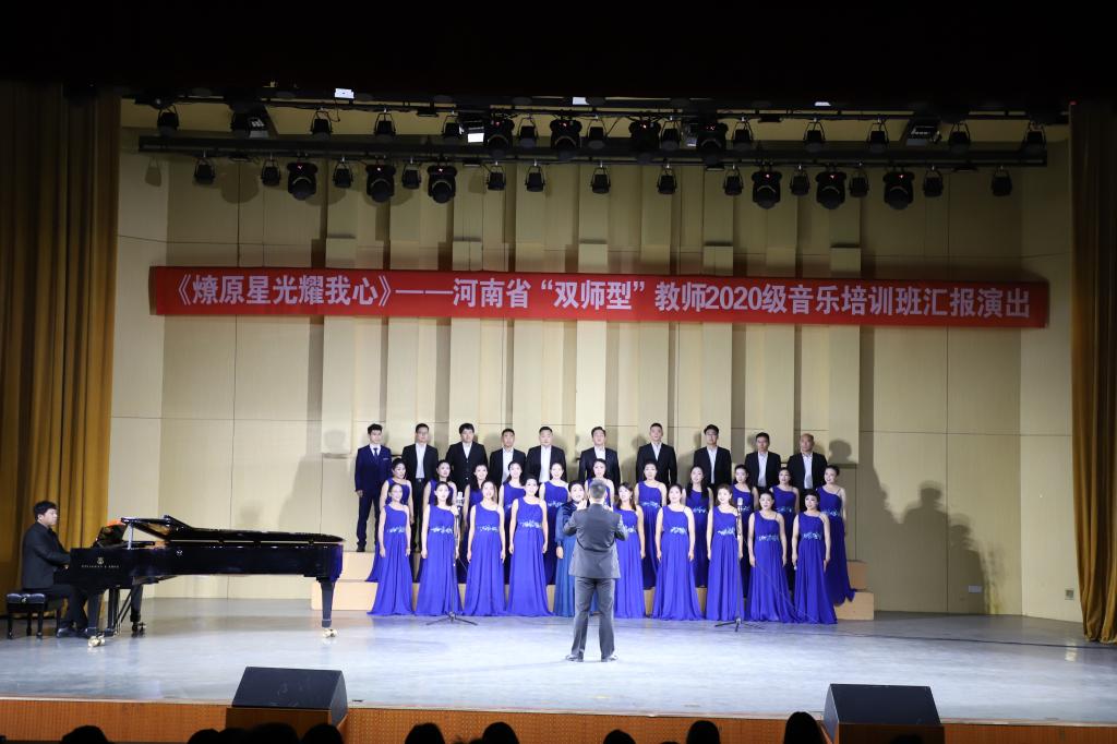 9月29日,《燎原星光耀我心》——河南省“双师型”教师音乐培训班汇报演出在艺术楼音乐厅成功举办,副经理陈新宇、任远,党委副书记郭振与四百余名师生共同欣赏了演出。