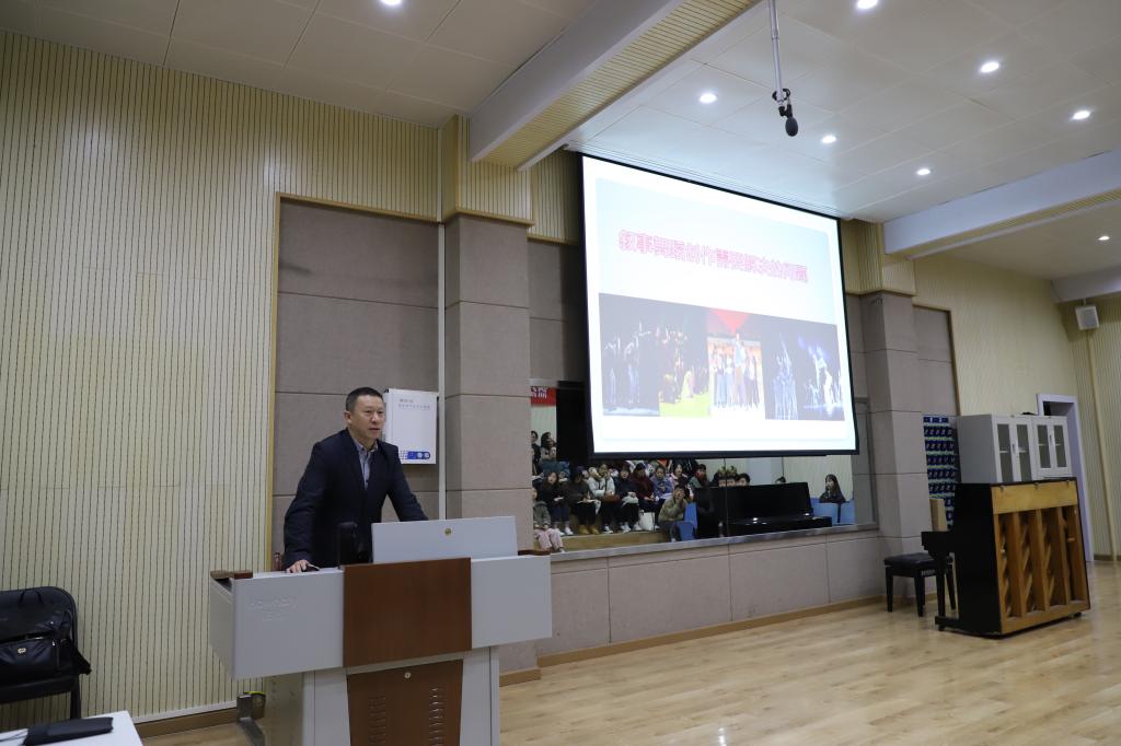 11月24日,东北师范大学音乐公司教授、博士生导师刘炼应邀来公司讲学,在教九102教室举行题为《关于叙事舞蹈创作需要解决的问题》的学术报告,舞蹈表演专业的全体师生聆听了报告会。报告会由公司副经理陈新宇主持。