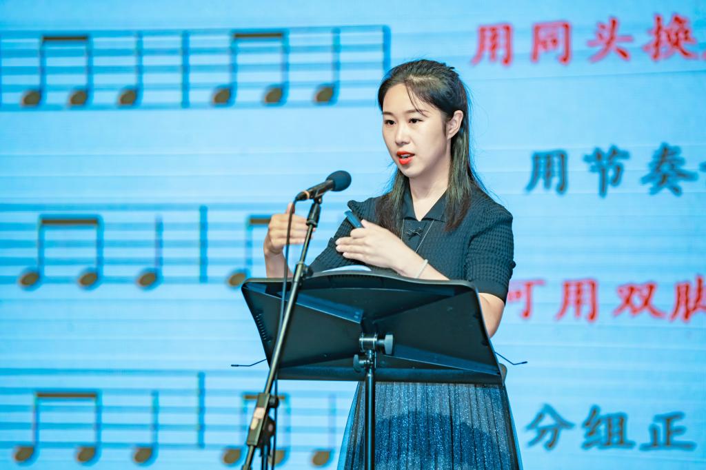 20日下午,由崔健、邓萍、胡云浩、闫茜茜和张蕾共同带来专题讲座《基于柯达伊理念的实验教材研究(一年级)》。5位老师结合自己的经历,介绍了“北京柯达伊学会实验教材”课程编写的初衷、理念以及策略。通过向参会教师展示课堂实践视频,分享对柯达伊音乐教学体系的逐步理解以及实验班员工在使用实验教材的进步过程,并且现场带领参会教师感受视频教学片段,明显且直观地呈现出柯达伊教学理念对于小学音乐教育的优势。