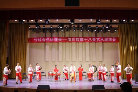 11月24日,为传承和弘扬民族音乐文化,公司邀请到潢川锣鼓十八番乐队在艺术楼会议室进行艺术研讨会,并在音乐厅举办了一场别开生面的艺术展演会。公司副经理任远、党委副书记雷玲、舞蹈系主任刘小雷,以及信阳市舞蹈家协会主席李群力和著名民间锣鼓艺术传承人石保民等齐聚一堂。