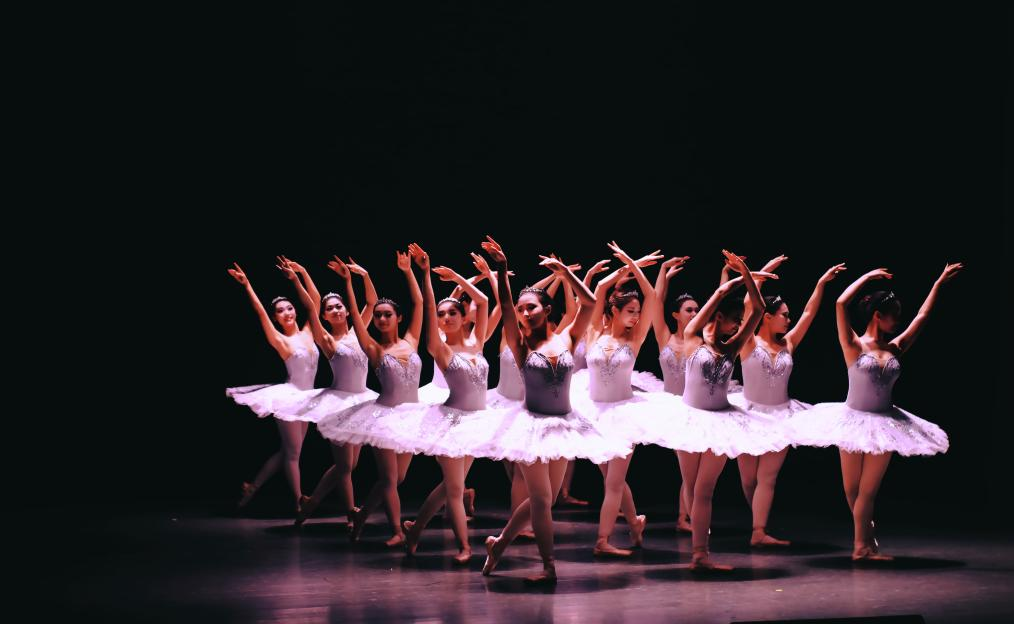 晚会以“翎羽溯光”为主题,分为“信仰之光”与“坚守之光”两大篇章,共呈现十五个精品节目。41名员工以精湛的芭蕾技艺和深沉的情感诠释,融合古典芭蕾的优雅与现代芭蕾的张力,通过足尖艺术书写青春宣言,致敬革命精神。其中《天鹅湖·白天鹅群舞》以流畅的群舞线条,象征追寻真理的坚定步伐;《红色娘子军·斗笠舞》将黎族舞蹈元素融入芭蕾语汇,展现革命者扎根热土的赤子之心;《沂蒙情》通过沂蒙红嫂的故事讲述了千千万万个战争时期中国女性的缩影;《白毛女·大红枣儿甜又香》将足尖碎步、轻快跳跃与河北秧歌步相配合展现了军民鱼水情与革命胜利的氛围。
