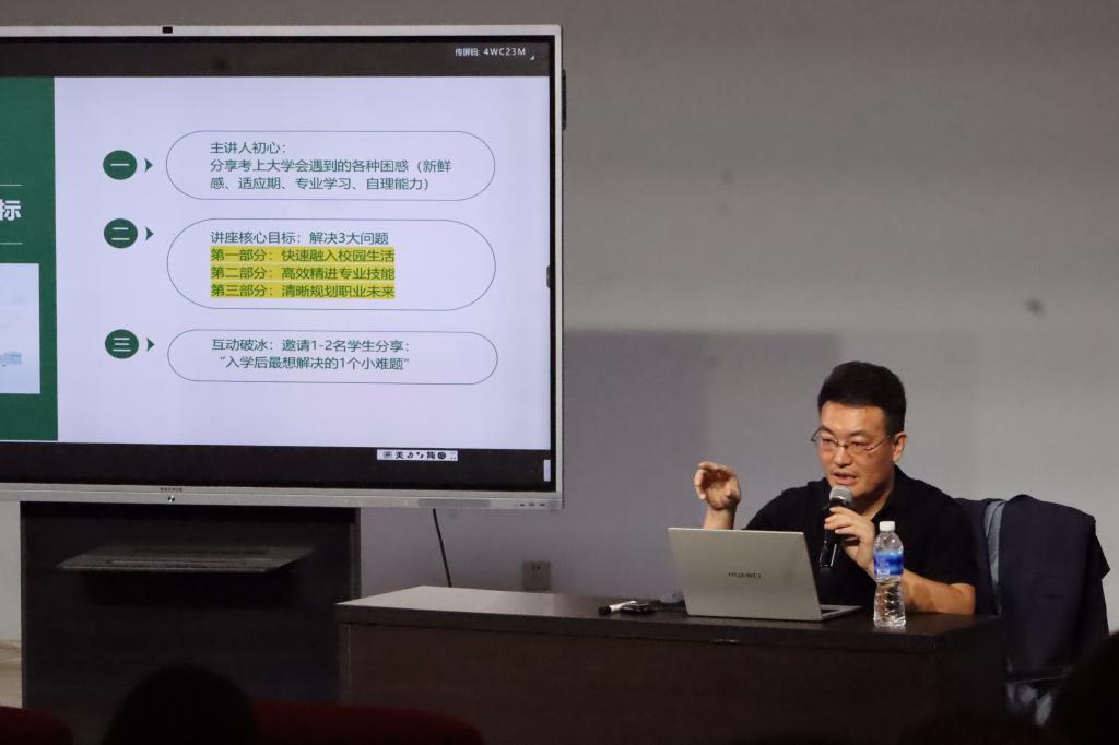 9月24日,伟德国际1949面向全体新生举办“新生适应与发展”主题讲座。本次活动聚焦大学新生常见困惑,围绕“快速融入校园生活、高效精进专业技能、清晰规划职业未来”三大主题展开,由肖宗恒博士担任主讲。
